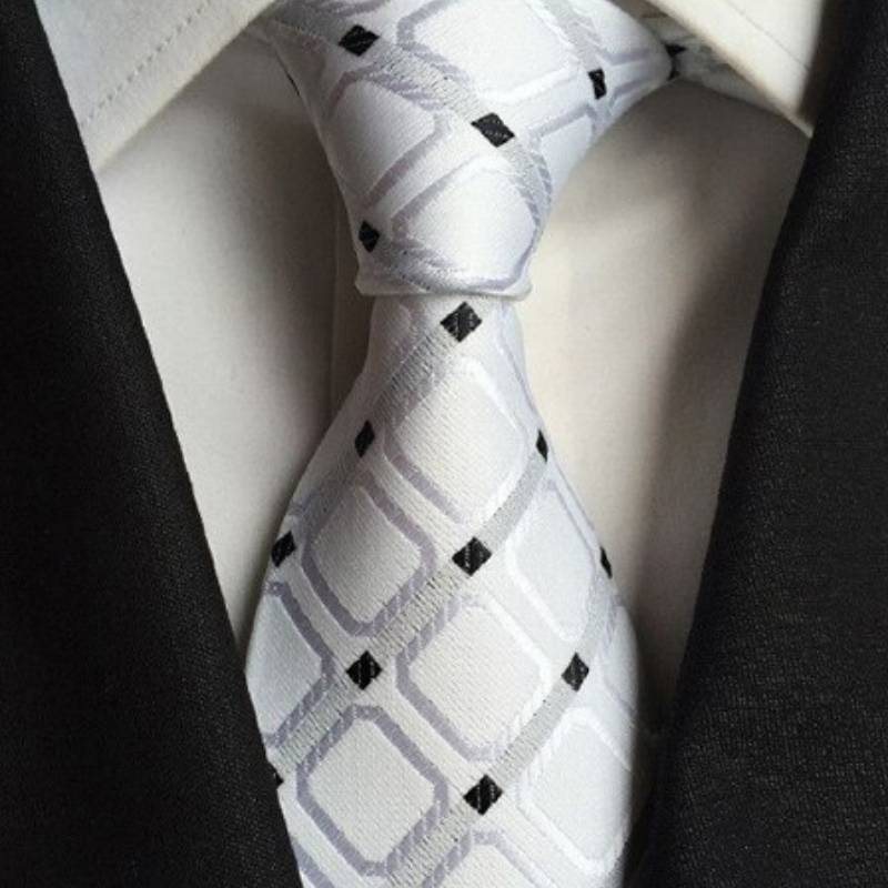 Cette cravate blanche à carreaux et pois noirs peut être facilement assortie à une variété de tenues et de couleurs. Elle se marie parfaitement avec une chemise blanche pour un look classique et sophistiqué. Vous pouvez également la porter avec une chemise de couleur pour ajouter une touche de contraste à votre tenue. Que vous souhaitiez un look formel ou décontracté, notre cravate sera votre meilleur allié.